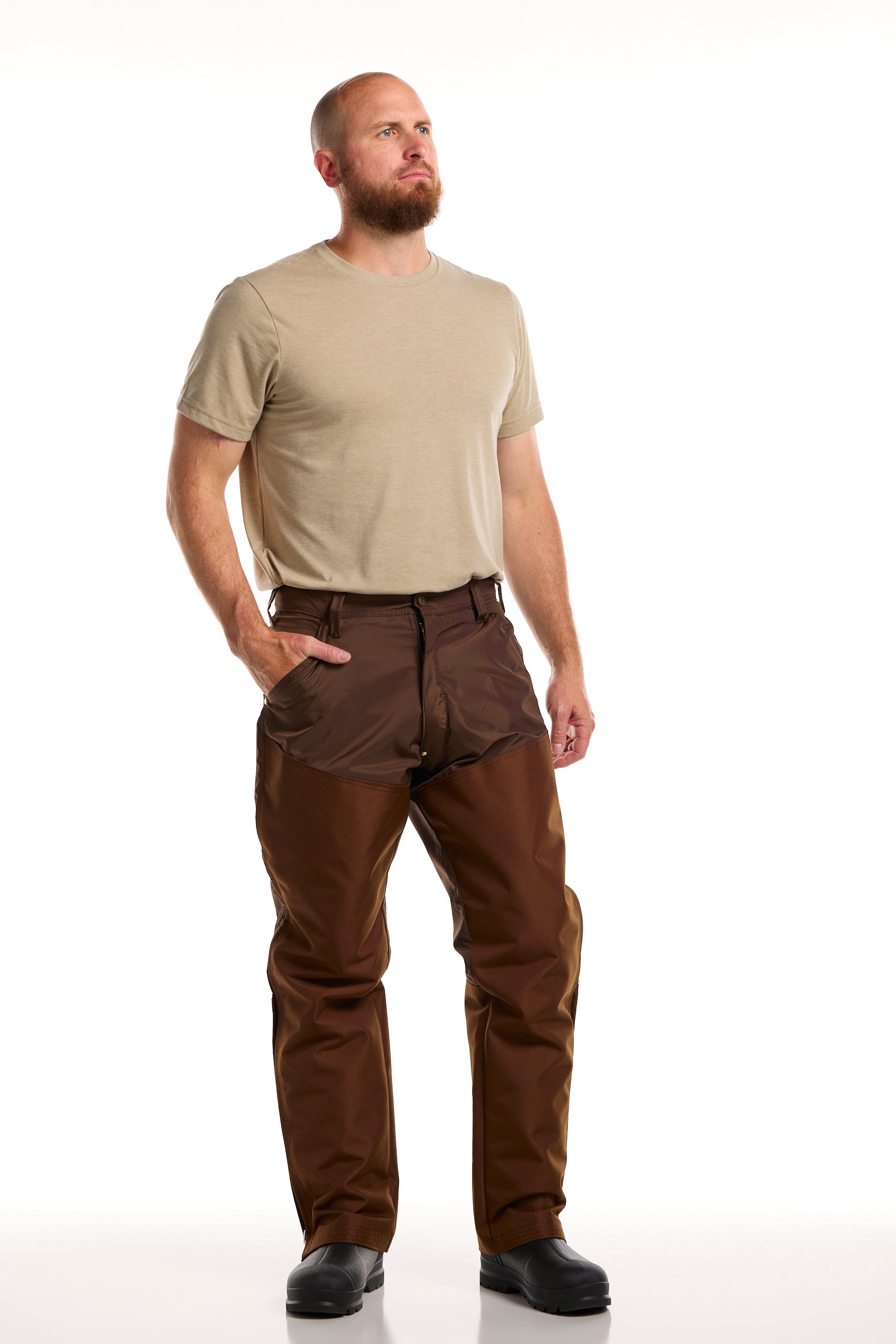 Made with 400 Denier Nylon fabric and added 1000 Denier Magnatuff protecting up to the knees, you won’t have to worry about getting stuck in the brush again. Bird and rabbit hunters love the Brush Buster pants, though they’re ideal for many outdoor adventures. These pants feature leg zippers, a zipper fly, two hip pockets, and two hand pockets, as well as rivets on stress points. It goes without saying, but these pants are briarproof, water-resistant, and USA-made.