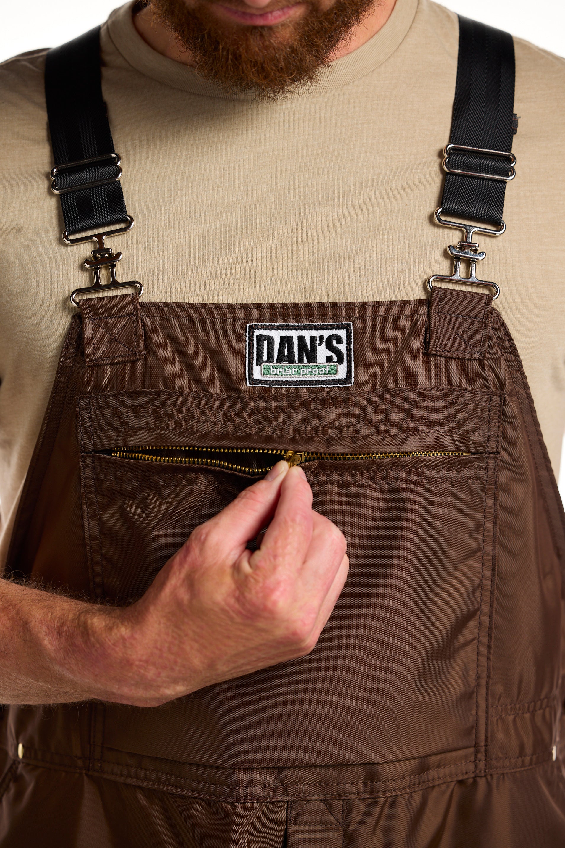 Stay dry and protected in all kinds of weather in Dan's High-N-Dry Bibs. These Briarproof bibs are a best seller for good reason: they offer a waterproof liner up to the waist, making them the best choice for wet weather hunting. While the lining is waterproof up to waist height, keep in mind that the seams are not waterproof, so these are not considered 100% waterproof. The High-N -Dry Briarproof Bibs are ruggedly manufactured in the USA by Amish craftsmen, with quality you can trust.
